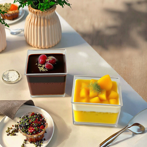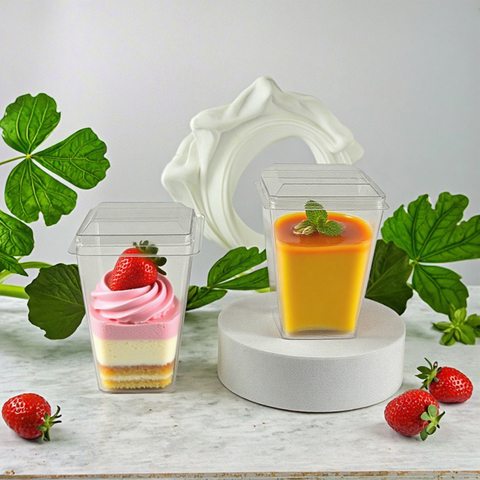Chất lượng cao thân thiện với môi nhỏ PS rõ ràng nhựa dùng một lần hình vuông tráng miệng & Mousse ly cho các dịp tiệc