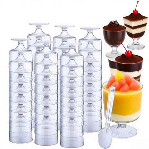Rõ ràng nhựa cao chân món tráng miệng ly thìa Mini Parfait Pudding Cheesecake sữa chua Jello mousse trái cây trifle ly không có nắp đậy