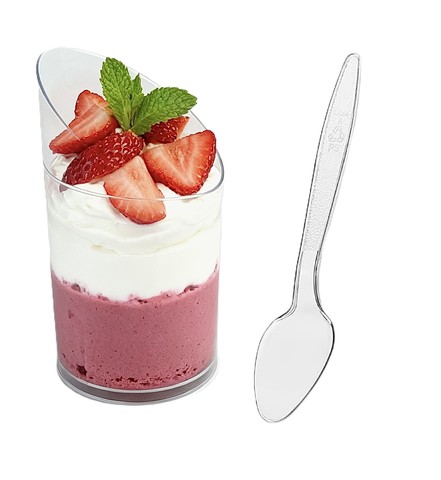 Rõ ràng PS nhựa dùng một lần cup với Spoon Set cho Mousse Ice Cream Cake món tráng miệng sữa nước trái cây Tequila cho cà phê